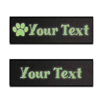 Son completamente personalizables, el texto está bordado y no serigrafiado, por lo que es más resistente al tiempo y lo mejor, es que el tejido es fosforescente, ¡ideal para los paseos de noche!