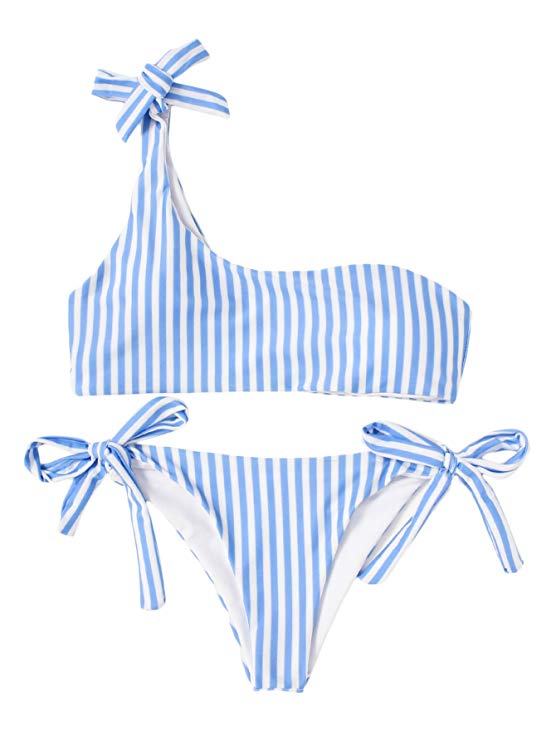 3. Bikini de rayas con lazos