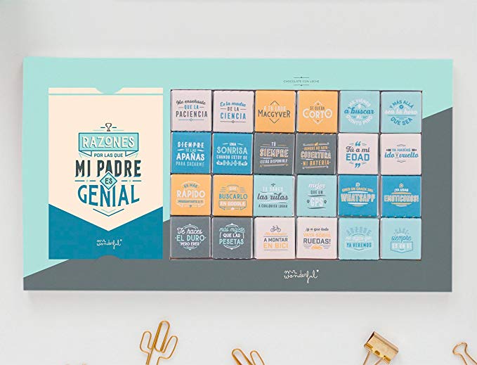 Si quieres tener un detalle con tu padre que sea tierno y dulce a la vez, nos encantan estas chocolatinas de Mr. Wonderful con todos los motivos por los que es genial.