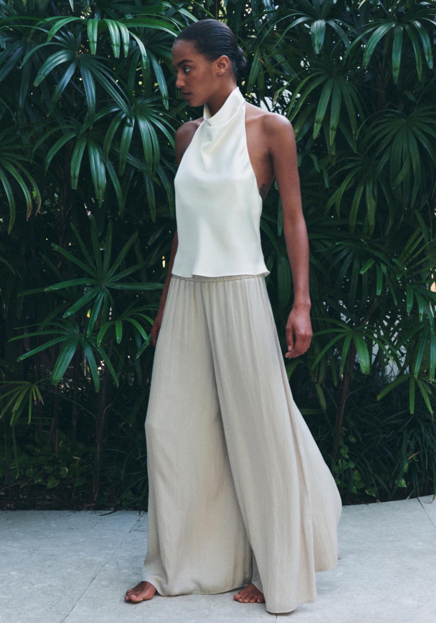 Zara tiene uno de los pantalones fluidos más elegantes e ideales de este verano. Es de tiro medio y tiene cintura con elástico. La pierna es ancha y resulta cómodo, quedando ideal con sandalias planas.