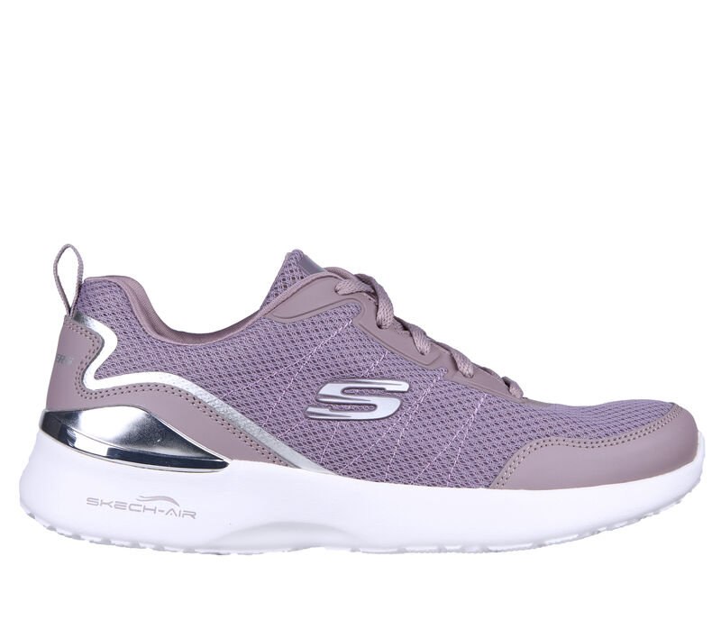 Las Skechers Skech-Air Dynamight – The Halcyon en color lavanda con detalles metalizados son la opción perfecta para las más estilosas. Su parte superior de malla y material sintético proporciona un ajuste ligero y transpirable, mientras que la media suela con cámara de aire Skech-Air y la plantilla SKECHERS Memory Foam ofrecen una amortiguación superior para mayor confort.