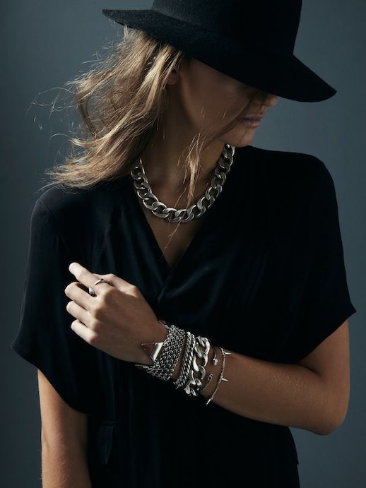Para las apasionadas del rock y los looks más agresivos, este choker tipo cadena combinará a la perfección con tu chupa de cuero, tus estampados escoceses y jeans rotos. Disponible en tonos negros, plateados y dorados, para que escojas tu preferido. Puedes llevarlo con una sola vuelta o dar más de una para que quede más ajustado al cuello.