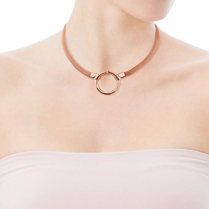 ¿Un choker formal? Sí, es posible. Elige un modelo con diseño minimal y simple. Elige materiales de calidad, aunque tengas que invertir algo más de dinero. Nos encanta este choker de Tous, hecho de plata de primera ley vermeil rosa con collar Mesh de acero IP rosa. Puedes añadir más colgantes dentro del anillo y personalizar tu choker como más te guste.