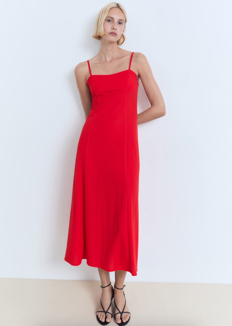 Zara tiene uno de los vestidos más estilosos y cómodos de toda la temporada. Sorprende por sus tirantes XXL, que dejan media espalda al descubierto. Además, su estilo fluido hace que resulte muy fresquito y ponible para cualquier ocasión. Es una prenda a la que podrás sacarle mucho partido. Su precio es de 29,99 euros.