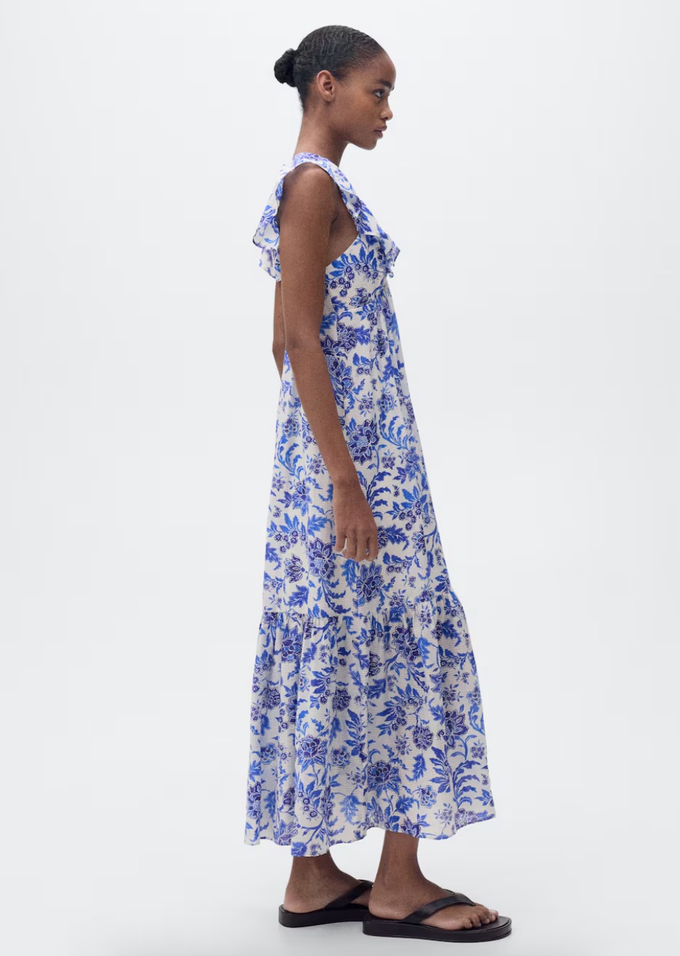 Vestido estampado floral con volantes – Mango (39,99 €)