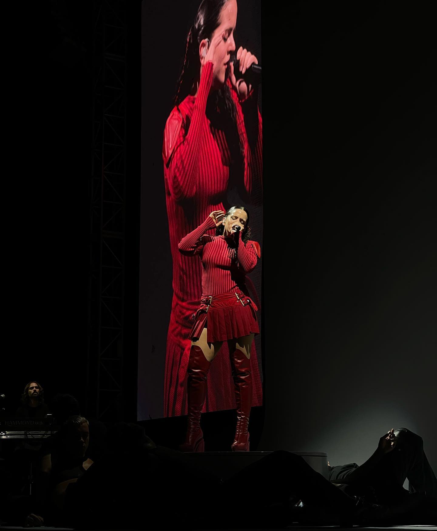 Si tu falda es de color rojo, haz como ella con su total look en el concierto de República Dominicana.