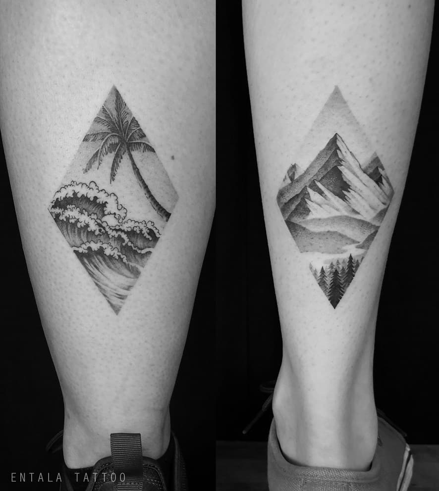 Estos tatuajes no son exactamente lo que parecen a primera vista. Es un arte está diseñado para cambiar de forma con el movimiento, o cuando estás cerca de una contraparte. La tatuadora Lumpini nos explica: «Como cuando doblas el brazo y ves un tipo de obra de arte, pero cuando tu brazo está abierto se convierte en algo diferente».