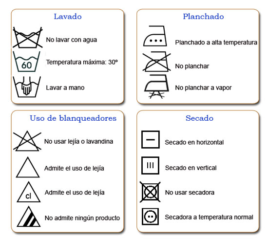 Para conservar la ropa en buen estado es indispensable lavarla y secarla adecuadamente. Para ello, es suficiente con saber leer los consejos de las etiquetas. Es básico conocer algunos símbolos para evitar que tu jersey favorito encoja o tu ropa interior en vez de ser blanca, ahora sea azul.