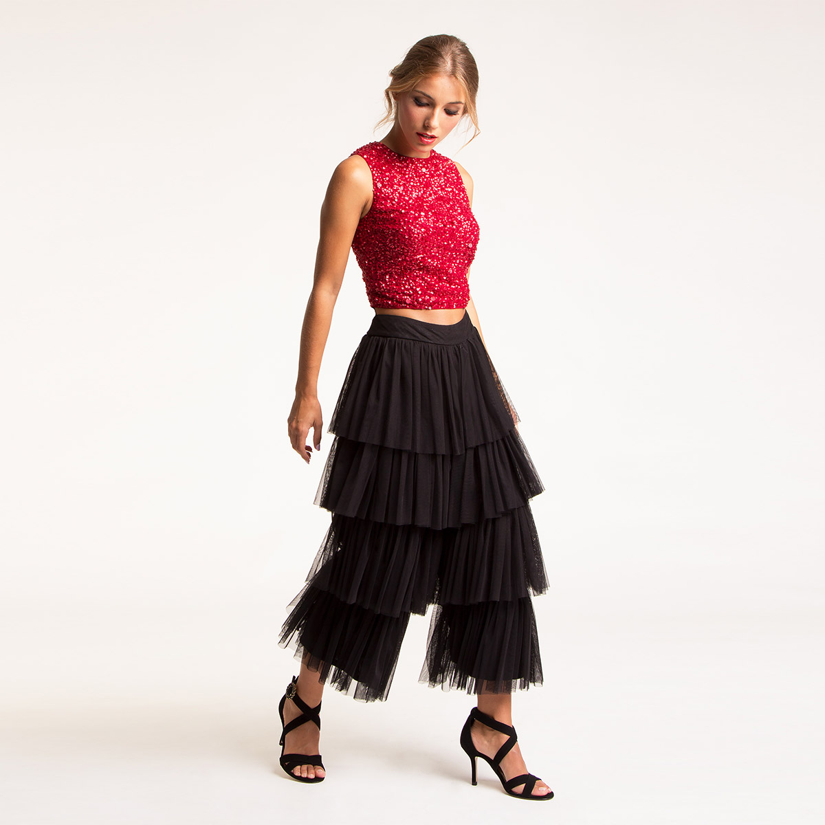 Si eres de las que prefiere más discreción a tirar la casa por la ventana, entonces tu apuesta sería marcar volumen en una parte de la prenda a la que quisieras dar protagonismo, ya sea el busto, o una prenda entera como una falda o un pantalón. Como este, que queda ideal sobre todo en movimiento… ¡Una maravilla!