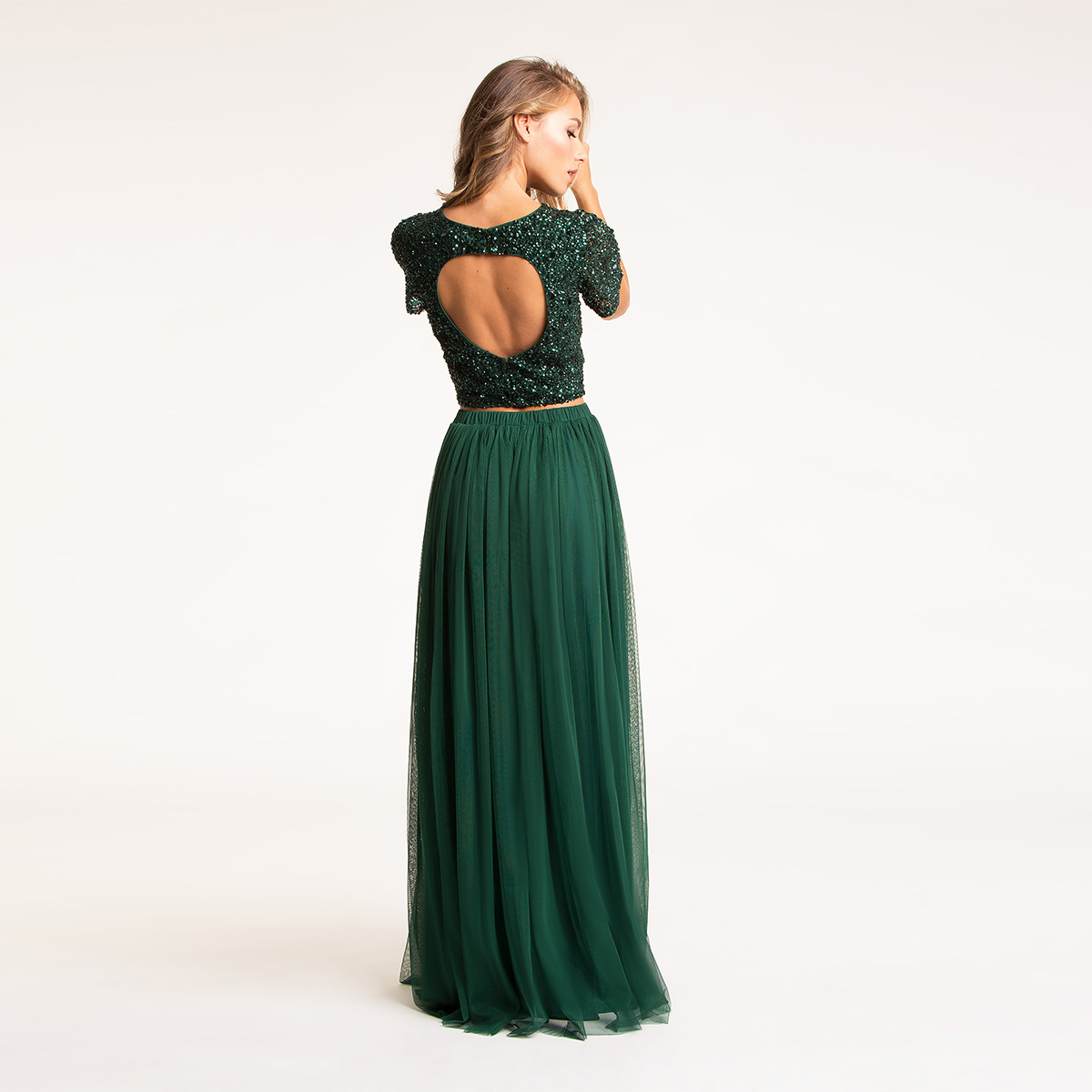 Un símil es este top, con bordado de pedrería y una maravillosa apertura en la espalda que le hace marcar esa diferencia que buscaríamos.