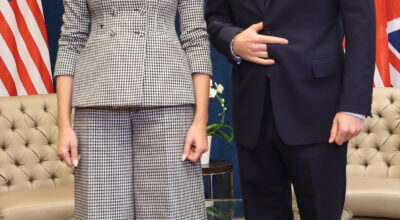 Este ha sido el primer viaje oficial para Melania sin Donald Trump, y en el que Melania ha demostrado una vez más su buen gusto al elegir el look perfecto para la ocasión. Un traje de dos piezas de Dior de estilo chic compuesto por una blazer de estampado de pata de gallo y un culotte a juego completando el look con unos stilettos negros.