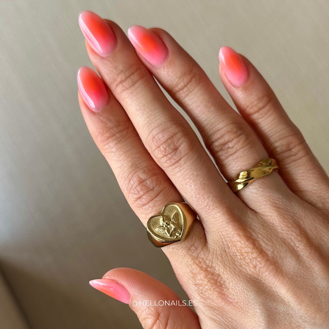 Uñas con efecto aura en rosa y naranja