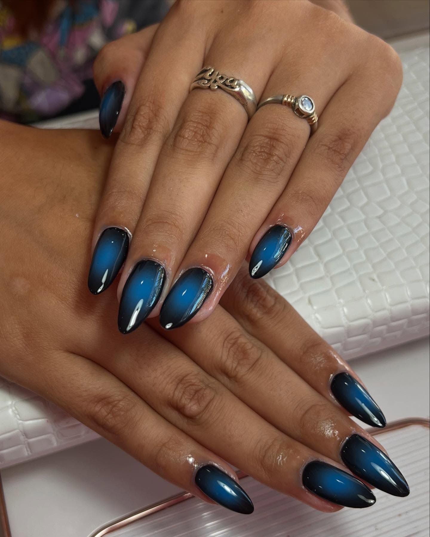 Uñas con efecto aura en azul