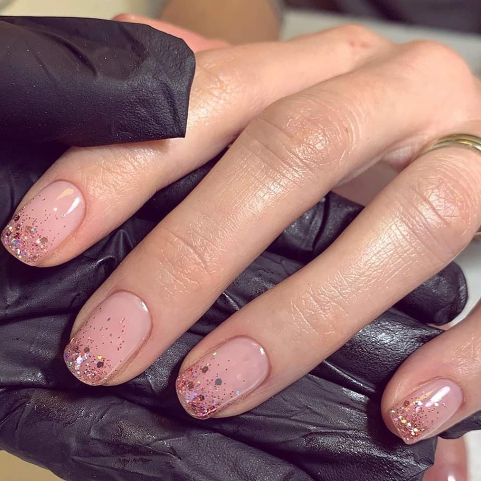La manicura francesa siempre es un símbolo de elegancia. La versión que te proponemos, en tonos rosas, es original y delicada, ideal para quienes desean lucir unas manos limpias y bonitas. El toque de purpurina añade un aire glamuroso y sofisticado, haciendo que tus manos destaquen aún más.