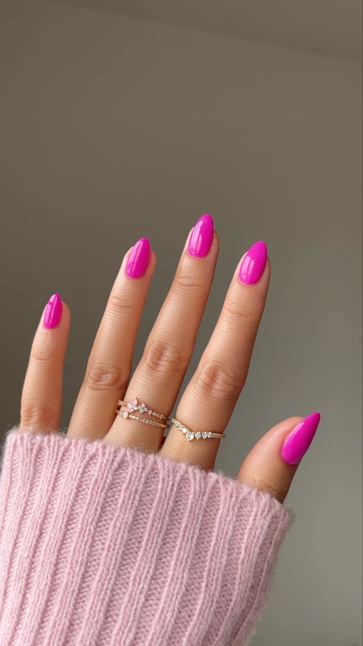 Las uñas en rosa Barbie son una elección perfecta para verano. Este tono brillante y llamativo no solo añade un toque de frescura a tus manos, sino que también complementa con el bronceado, haciendo que tus uñas resalten con un contraste. Su intensidad y alegría son perfectas para verano, aportando un aire divertido y audaz a cualquier look.