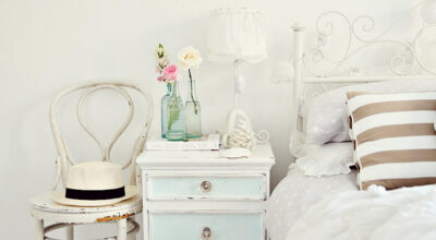 Para ahorrarnos unos cuantos euros puedes ser creativa y hacer con muebles vintage pero decapándolos por ti misma. El mobiliario siempre da personalidad a la habitación y en el caso del dormitorio que estamos buscando con una cómoda será suficiente. Puedes hacerlo con chalk paint y decaparla tú o bien comprar una. Este mueble te costará unos 200 euros.