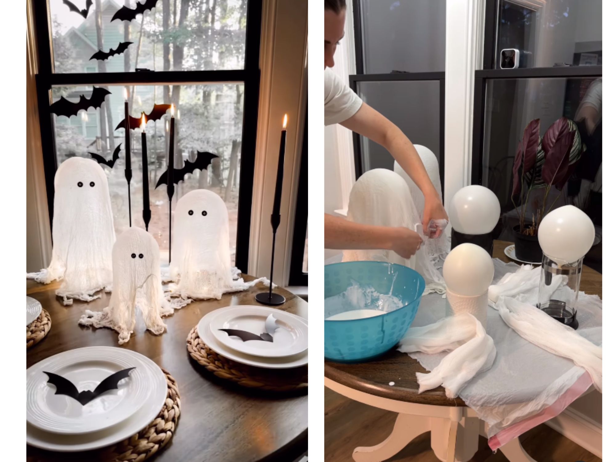 Decoración Halloween fácil de hacer: Fantasmas con luz para adornar la mesa