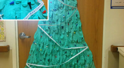 Pero lo mejor de todo es que no solo utilizan los típicos adornos de Navidad sino que la imaginación de éstos llega hasta límites insospechados creando sus propios abetos con guantes de quirófano, utilizan los botes de pastillas como luces, disfrazan a los recién nacidos y hasta crean su particular Papá Noel.