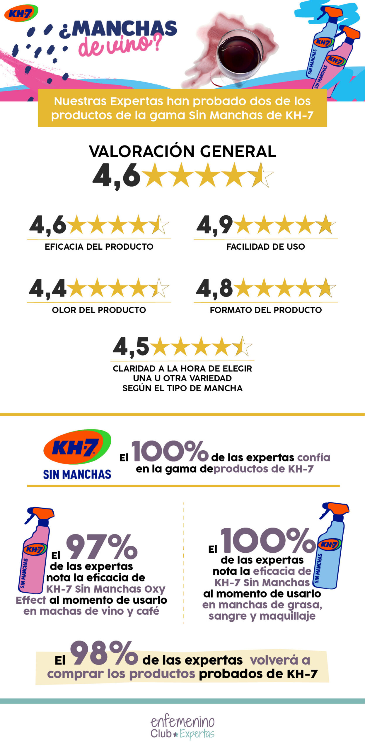 ¿De qué hablamos? De KH-7 Sin Manchas y KH-7 Sin Manchas Oxy Effect, los productos que lograrán que te olvides de las manchas y te centres en disfrutar al máximo de todos tus planes. Y no solo lo decimos nosotras, sino también las integrantes del Club de Expertas de enfemenino, que han tenido la oportunidad de probar los productos que te recomendamos a continuación en casa para verificar su eficacia.