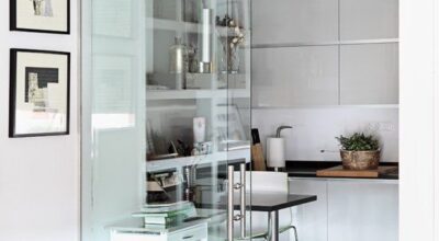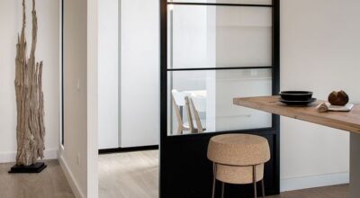 Otra de las versiones que también nos han gustado especialmente han sido las puertas de granero acristaladas, ideales para casas que cuentan con poco espacio.