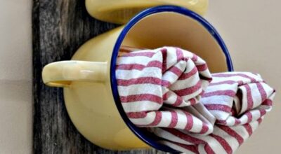 Quizá, el utensilio más práctico sean las tazas, pues se pueden transformar en macetas, lámparas o en recipientes en los que poder guardar nuestros paños. Aunque tenemos que confesar que la idea que más nos ha gustado es la de rellenarlas con cera para transformarlas en velas vintage.