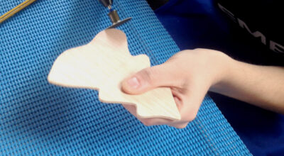 Paso 2: Recortamos con la herramienta Moto-Saw, siguiendo las líneas marcadas con el lápiz (siempre hay que tomarlas como una guía). Al terminar, hay que hacer un orificio superior para poder incluir un hilito para poder colgarla del árbol.
