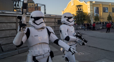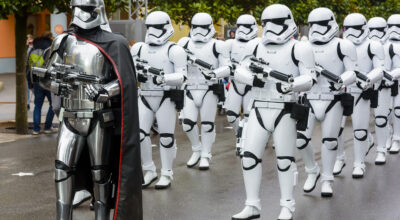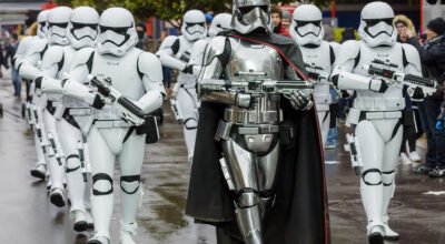 - La Stormtrooper March: imagina que vas caminando y escuchas una música solemne (chun chun churún chun churún chu churún) que anticipa la llegada del Capitán Phasma seguido de una marcha de auténticos Stormtrooper. Un espectáculo que te hace trasladarte directamente a las películas.