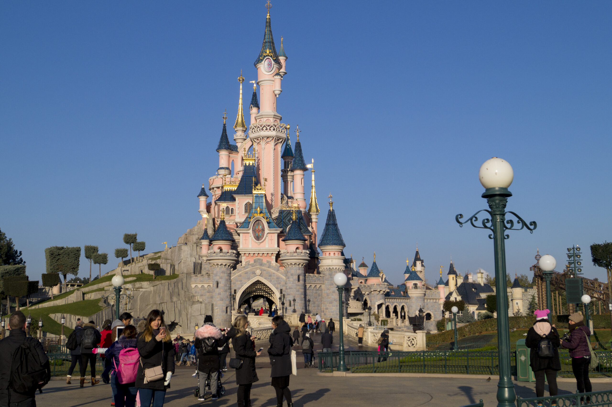 ¿Dónde? Parque Disney, en el Sleeping Beauty Castle.