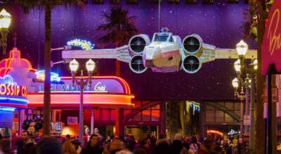 - El espectáculo nocturno: A Gallactic Celebration: si tuviésemos que escoger una palabra para definirlo, sin duda sería ÉPICO. Al caer la noche, sobre la Tower of Terror (hablaremos de ella más adelante) se proyecta un recorrido en imágenes de toda la saga Star Wars. Un espectáculo acompañado de luces, fuegos artificiales y efectos especiales que merece mucho la pena.