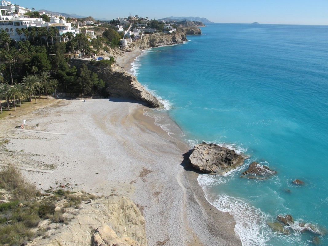 Es una de las calas más bonitas de la costa de Alicante, y que año consecutivo cuenta con la bandera azul. Además, de la belleza de sus aguas cristalinas si eres amante del submarinismo esta zona es perfecta para practicarlo. Se accede a esta playa a través de la carretera de Granadella. Desde la misma carretera de la Granadella se puede acceder al Mirador y desde la zona del aparcamiento podrás encontrar incluso una ruta de senderimo. ¡Te enamorará!