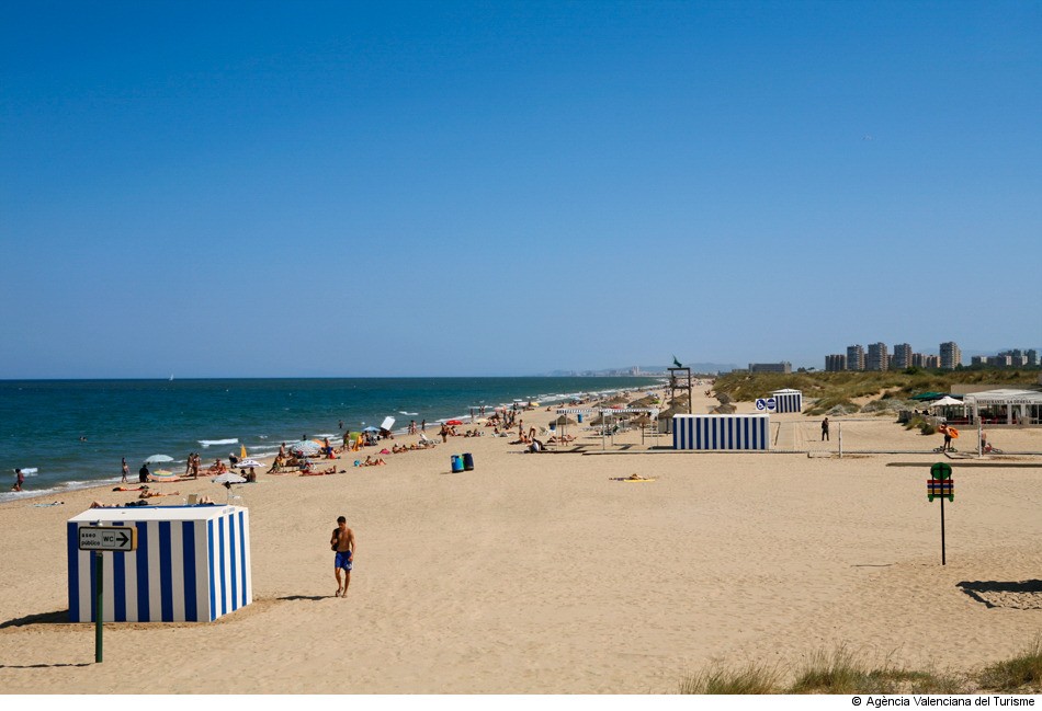 La playa de El Saler está situada en pleno parque de la Albufera, una zona muy protegida a nivel medioambiental. La playa cuenta con más de 4.900 metros de extensión, y está muy cerca de la ciudad de Valencia. Concretamente está situada a unos 11 km por lo que podrás hacer una parada después de comer y relajarte aquí el resto de la tarde. Se trata de una playa mucho más tranquila que la playa de la Malvarrosa, por lo que si quieres evitar aglomeraciones te recomendamos que hagas una parada en esta playa. Además, de ser una playa muy tranquila también podrás disfrutar de deportes al aire libre como surf, windsurf o paddle-surf.