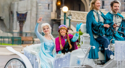 De día, puedes pasar por el mercadillo de Arendelle y degustar algunos de los helados más ricos del parque, o disfrutar con los regalitos que esta lejana tierra nos trae. ¡El verano ha llegado y es hora de disfrutarlo! Si, además, quieres saludar a las regentes del país, podrás encontrarlas en varios momentos del día cerca del Castillo de la Bella Durmiente. Les encanta pasear por allí en su elegante calesa. Y no te preocupes si no coincidieras con ellas, puesto que ambas se han sumado a la cabalgata diaria Disney Magic on Parade!