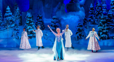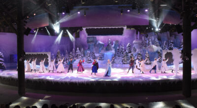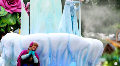 El espectáculo está servido… Frontierland acoge ahora al pequeño pueblo de Arendelle y abre su escenario principal a un multitudinario y sorprendente karaoke. Un paisaje nevado nos transporta a las heladas tierras de la película. Enseguida aparecen la princesa Anna, Kristoff y, por supuesto, el encantador Olaf. Todos ellos, acompañados de unos maestros de ceremonia de excepción, nos invitan a preparar un festival dedicado a la reina Elsa. ¿Cómo lo hacen? Pues de la forma más divertida posible, a través de sus canciones, que podremos seguir mediante las pantallas del escenario. Los principales temas del film se irán sucediendo hasta terminar con un broche de oro ¡que preferimos no desvelaros!