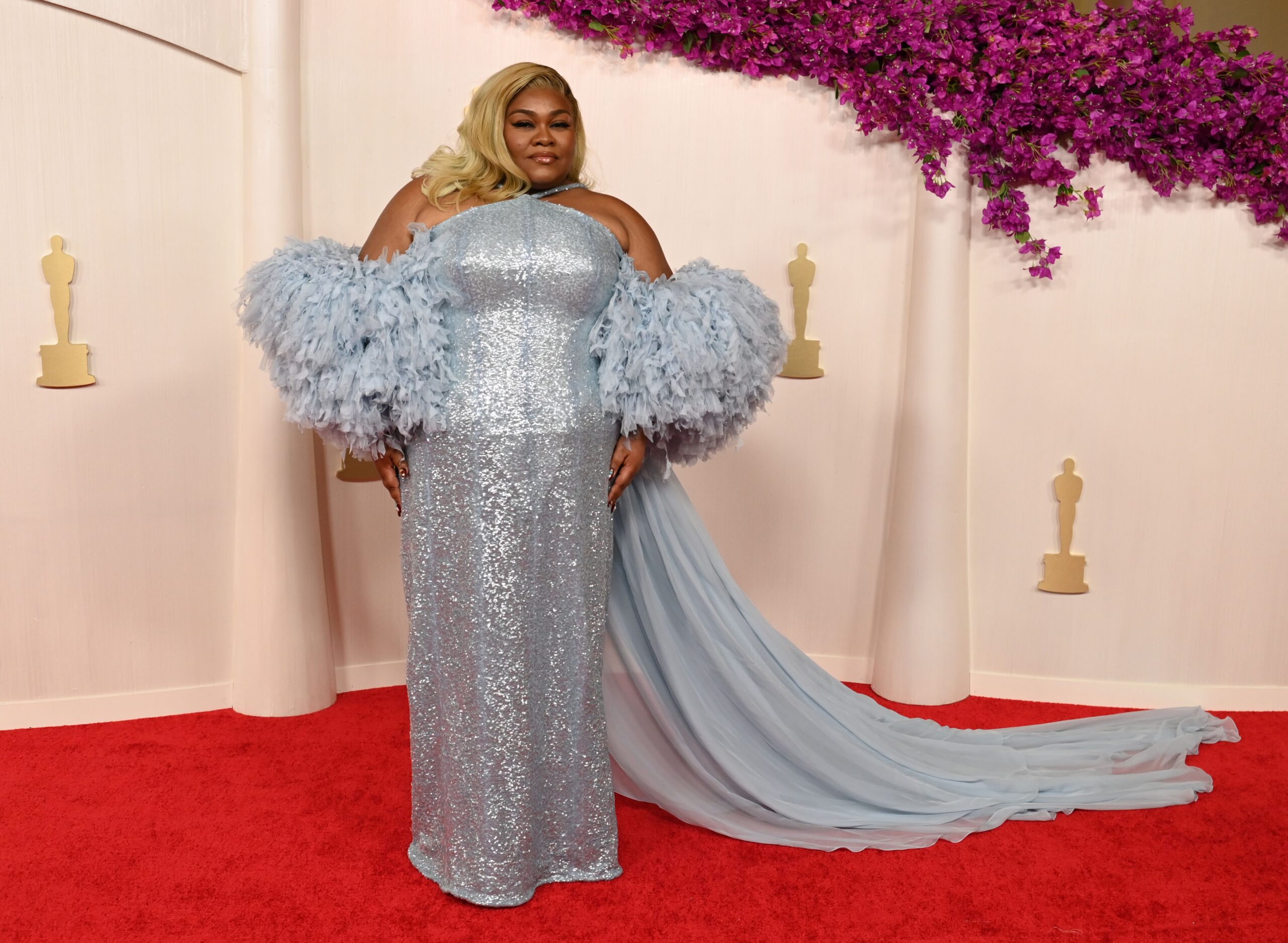 Otro de los nombres más sonados en la gala de los Oscars fue Da’Vine Joy Randolph. La actriz, que se llevó la estatuilla a Mejor actriz secundaria por su papel en Los que se quedan, eligió un vestido con diseño joya en azul cielo, mangas abullonadas y color gasa. Reúne todas las tendencias del año y le favorece un montón.