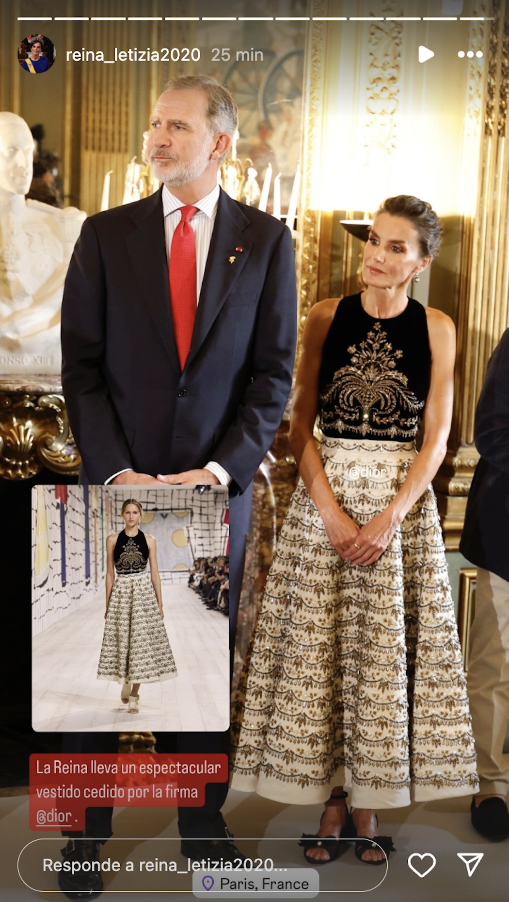 Letizia brilla en París con un elegante vestido de Dior en la ceremonia de inauguración de los Juegos Olímpicos 2024